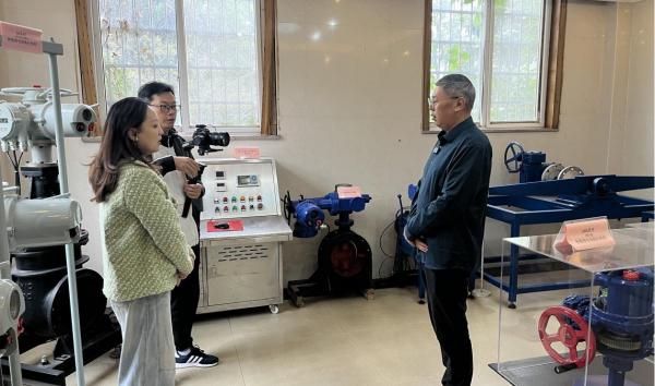 隨后胡工帶領記者們重點參觀公司展廳,并接受了記者的現場采訪。胡工詳細介紹了公司深耕閥門智能控制領域三十余年所取得的成就與榮譽;胡工提到,近期公司以多年來從事執行機構行業成熟的工作經驗,結合國內市場的需求,引進、消化、吸收國外各種先進的電動執行機構的設計和制造技術,并根據同類產品在實際應用中的情況,開展了大量針對性的改進;新產品正在研發中,研發成功后將突破同質化競爭壁壘,大大節約了成本,既能以性價比搶占市場,也可留存利潤投入后續研發,形成“成本優化-技術迭代”良性循環。