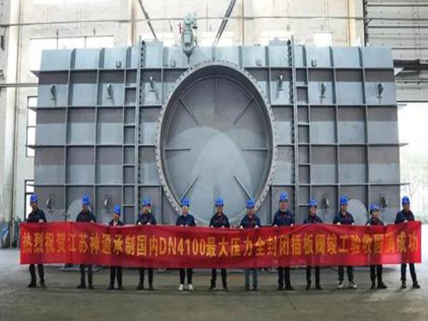 近日,江蘇神通閥門股份有限公司專為極端工況定制的DN4100大口徑高壓差,全封閉式插板閥順利完成全流程生產、檢測與驗收,正式交付客戶。這也意味著我公司提供的配套智能型閥門電動裝置,在國內首臺DN4100大口徑高壓差全封閉式插板閥上完成驗收。