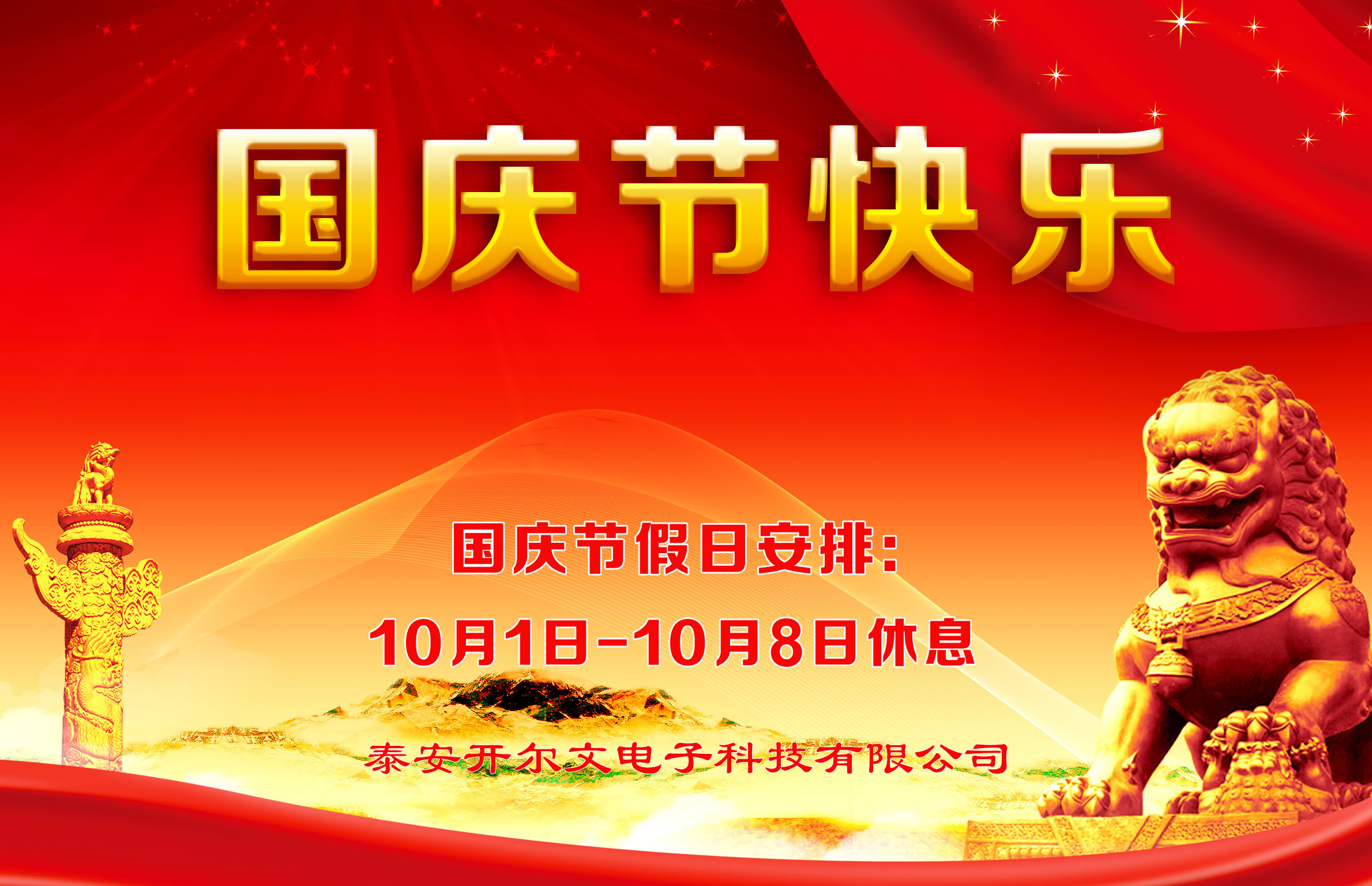 泰安開爾文電子科技有限公司全體員工預(yù)祝大家及家人國慶節(jié)快樂、中秋節(jié)快樂!